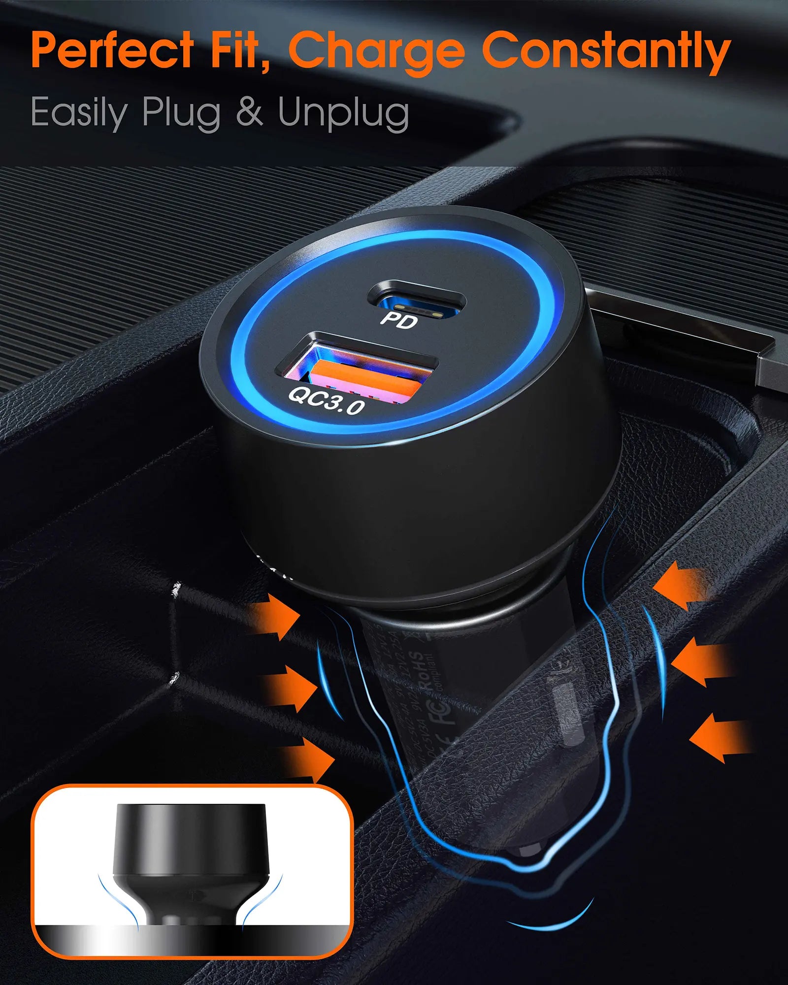 - 2-in-1 design, so you can use it as a USB-A or USB-C car charger