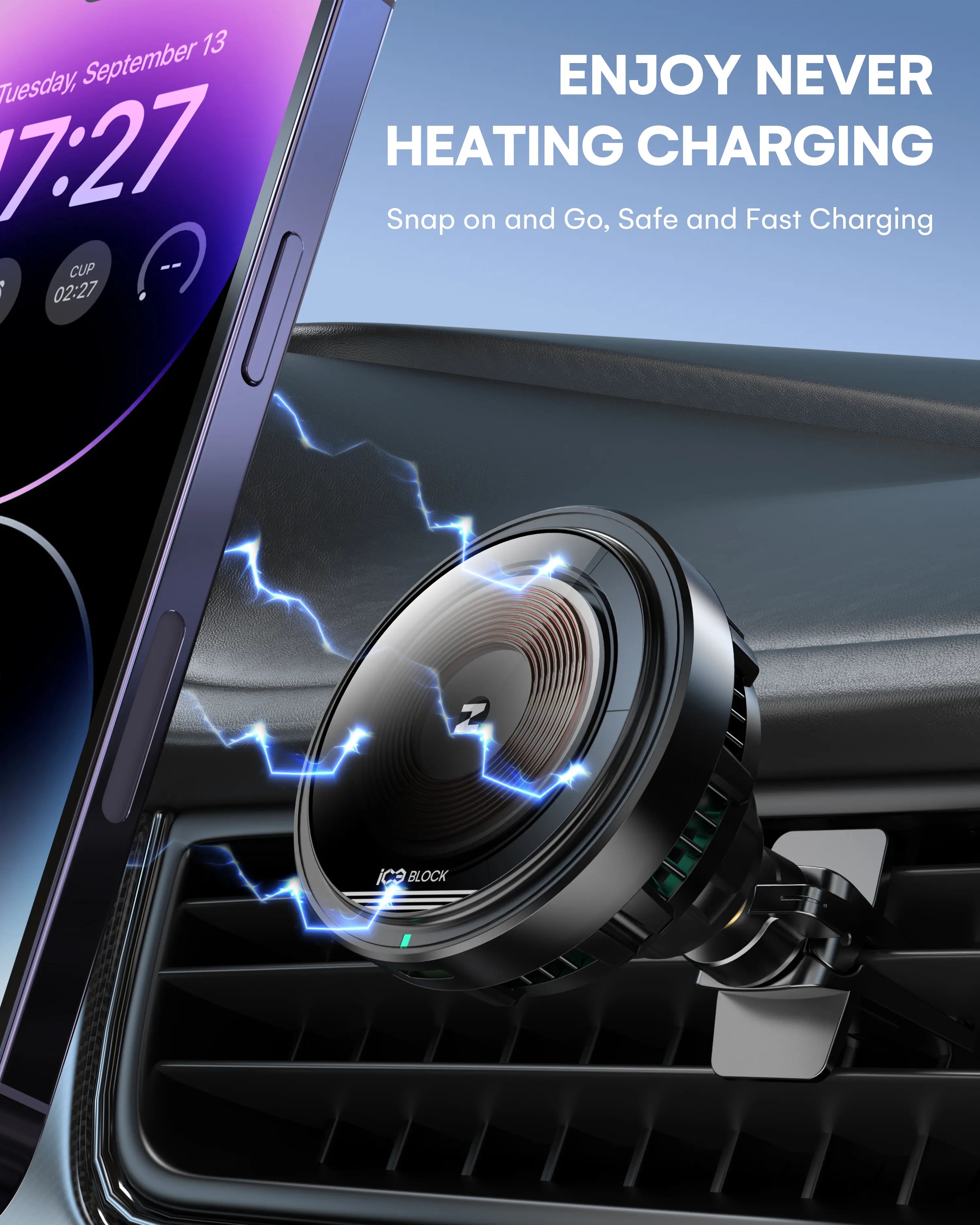 With smart cooling chips and a cooling fan in place, our Car Wireless Charger Mount delivers efficient charging while preventing overheating, all while supporting eco-friendly operations.