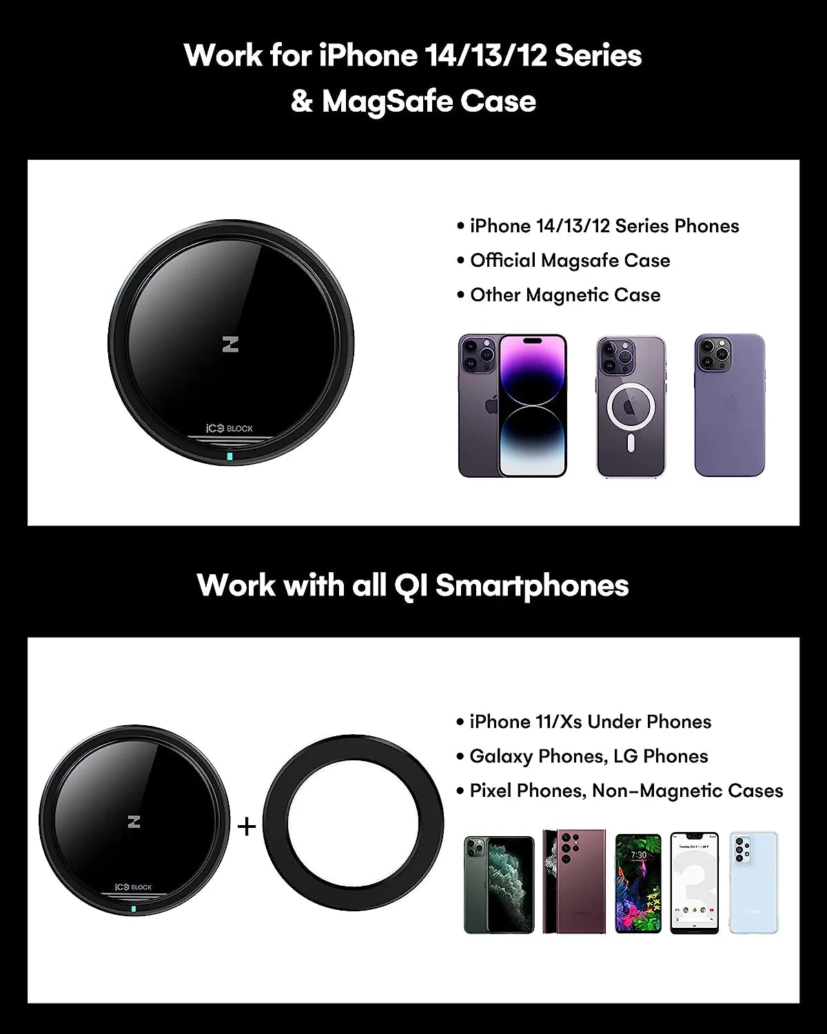 The magnet is designed specifically for iPhone 12 to 16 series, but it also comes with magnetic rings that can be attached to other phones. This lets you enjoy magnetic charging even if your phone doesn't have it built in.