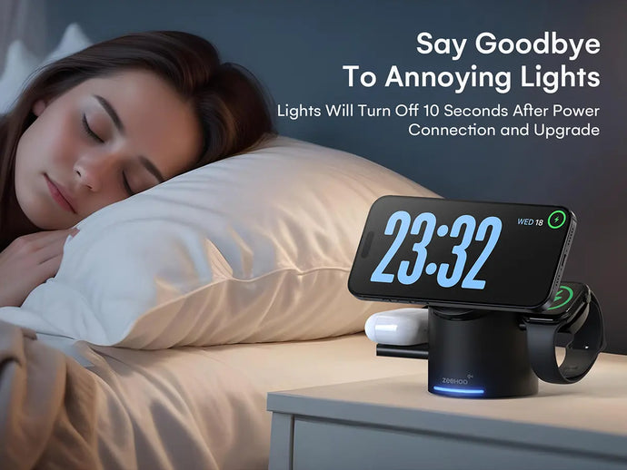 Distraction-Free Charging: Pulsing indicators complete 5 brightness cycles (0-300 lux) before full darkness during active charging.
